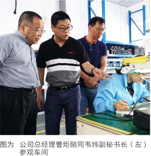 This print dispatch on May 17th, Jinhua municipal government deputy secretary general Wei Wei accompanied by high tech Industrial Park Management Committee Director Zhu Feng Wei Jinhua under the Zhejiang CENFO Electronic Technology Co.,Ltd visited the research work.